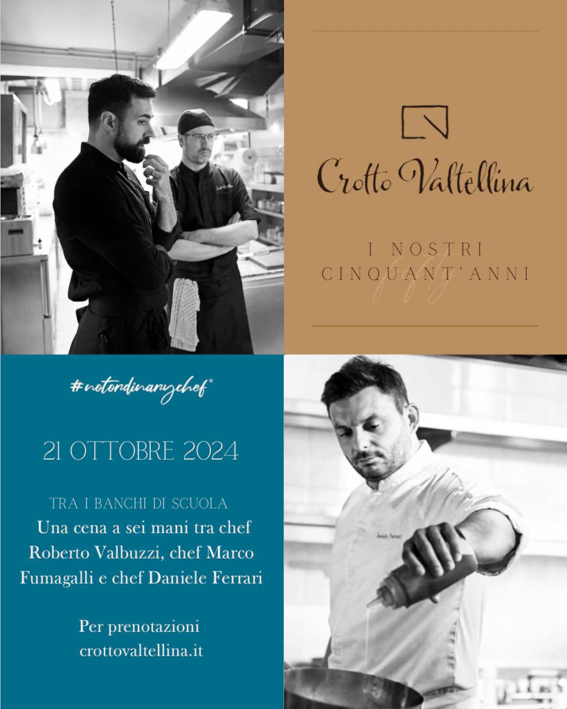 21 Ottobre 2024 Cena a sei mani chef Roberto Valbuzzi, chef Marco Fumagalli e chef Daniele Ferrari Read More Author: paolo Category: Non categorizzato Share: Facebook Twitter Pinterest